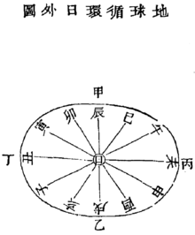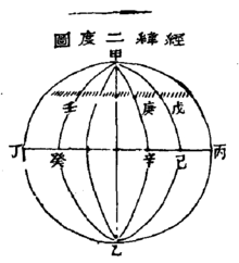卷九十九 ◎地球天文合论四(西洋玛吉士撰) ○纬经二度论 古之人以地体为平坦,东西之相距,较南北甚宽,故立纬线以量二极相离之远近,立经线以量东西相距之长短。其纬度则从二极算起,其经度则从铁岛算起。盖以为画铁岛地方之午线,即至西最中之午线也。迨后人考查详明,深悉地球之形体,而欲准定地面各处之所在,仍用纬经二线之法。其法先以地球分为一百八十段,每段横画一圈宽一度,均与赤道周围相平,在赤道之北者九十圈,南者亦九十圈,其圈则为平行线,其度则名曰纬度。每一度六十分,每一分六十秒,又以赤道于地球上分为三百六十格。每格直画一圈,宽一度均达南北二极,与赤道相搭,为直角。其三百六十度,分为两半,不拘从何圈算起,往东一百八十度,往西亦一百八十度,至背面相对之处而止。其圈则为午线,其度则名曰经度也。每度数亦与纬度相同,则地球之上,各处皆有平行线,与午线相搭。而各处之地位,居于何度,相离若干,无不了然,是以欲知何所只观其居子地球南北第几平行线,与午线相搭之处,即可明矣。今凡论地纬者,乃一处之相距于赤道也。凡论地经者,乃一处之午线相距于第一午线也。其纬度在于午线上计算,从赤道而起,往北九十度,往南九十度,其在北者则曰北纬度,在南者则曰南纬度,地愈近于极,则其纬数愈多,愈近于赤道,则其纬数愈少,各处之纬数,至多不能越九十度。盖赤道之离二极也,亦各九十度,午线由赤道至于极,亦各九十度也,其经度在赤道上计算,从第一午线而起,往东一百八十度,往西一百八十度。其在东者则曰东经度,其在西者则曰西经度。其定立午线之首,前款已为详明。其纬度因地球二极处形扁,相离稍有差别,然甚觉微细,为数无几,故诸察地理者一例计算,未曾区别也。但其经度之数,有长短之别与纬度不同。盖因地球体圆,自赤道南北两分而前,渐近于二极,其平行线渐觉圈小,而其午线之相离亦渐窄,尽于枢纽之处。故离赤道六十度之处,其经度较之在赤道上者,不过一半。所以午线相离之至远者,在赤道上,而经度之至长者,亦在赤道上也。故各处之经度,凡论远近,总应归赤道上计算也,其经线可以按度数而算,亦可以按时刻而算。按度数而算,则每一度分为六十分,每一分分为六十秒。按时刻而算,则每十五度作为四刻,每一度作为四分,又每十五度有迟早一点锺之差别。在东者迟四刻,在西者早四刻,盖日之类行由东而西,先过东边之地方,后过西边之地方,所以东边得日在先,西边得日在后。及至在西者方届其时,而在东者已越其时矣。故东迟西早,每十五度有一点锺之差,譬如京师时届午正,以东十五度之处则已交未初,以西十五度之处,则尚系午初。再东再西,总以十五度为限。按此类推,即可知其时刻也,今绘纬经二度图于后以备览。 经纬二度图 ![]() ▲经纬二度图 〈丙丁一线为赤道,譬如戊字为一处地方,其纬度即从己至戊之线,其经度如以甲癸乙一圈为第一午线,从癸至己即其经度也。若庚字为一处地方,其纬度即从辛至庚之线其经度,即从癸至辛也。如辛字为一处地方,则无纬度,因其在赤道上。其经度亦从癸至辛也,如癸字为一处地方,则纬经二度皆无。盖因其在赤道上故无纬度,在第一午线上,故无经度也。〉 以上所论,以类推可见。其一、凡居于赤道上之处,不见纬度。盖纬度从赤道起算,直至二极。必须离开赤道,或往南往北一秒半秒方有可计算。凡居于第一午线上之处,不见经度。盖经度从第一午线起算,直至东西。必须离开第一午线,或往东往西一秒半秒,方有可计算,所以若居于第一午线与赤道交会之处者,纬经二度皆不见,其理亦然。其二、凡同居一午线之上者,或南或北于赤道相距同远,则彼此纬数相同,时刻不异。但因其所居南北不同方,故彼此有昼夜长短之别。譬如在南者昼五十二刻,夜四十四刻,是昼长夜短也。在北者则昼四十四刻,夜五十二刻,是昼短夜长也。若北方昼长夜短,则南方必昼短夜长,此理之所必然也。推之四季,亦彼此相反。在南者时届春令,在北者则为秋令。在南者时届夏令,在北者则为冬令。若北方春令,则南方秋令,北方夏令,则南方冬令。盖其所居同线而异方,故纬数相同,时刻相等,而昼夜则相异,四季则相反也。其三、凡居两面相对一午线之上者,或在南或在北,彼此于赤道相距同远,则纬度相同方位各异。但因其所居东西相对,故彼此有子午正对之差。譬如在东者时交午正,在西者则届子正。若东方子正,则西方必午正。然其昼夜之长短相等,四季之时令相同,盖因彼此所距于赤道同远,故纬度之数目不异也。 再各平行线,因离于赤道渐远,其圈渐小,每度数目,虽仍为六十分,每分六十秒,每秒六十微,然较之赤道上者,则逾远愈为短少,至二极之处而尽。故将各平行线较赤道只有若干之数目算明,画图开列于后以备查阅。 (表略) ○地球时刻道论 古之察地理者,曾以地球分为五道,乃热道一段,寒道温道各二段,外又以六十道分之,而宽狭不一。南北二方各三十段,名之曰时刻道,其故有二焉:一则指明各地彼此相去之远近,二则辨明各地昼夜时刻之长短。但欲指明地球各处之所在,或南、或北、或东、或西、纬经二度,既已绘定详明,而各处所在,必能洞悉胸中,斯能不迷于所视。顾后世之察地理者,未尝多用其法,以指示各处所在。故仍论之,夫时刻道者,乃地球一段地方,间于二横圈之中者也。凡居每道上之人,其时较于